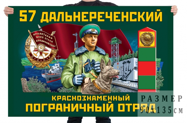 Двусторонний флаг 57 Дальнереченского Краснознамённого погранотряда